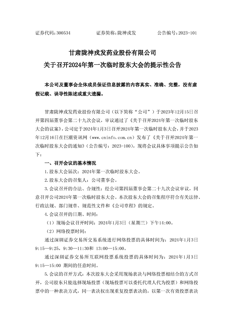 關(guān)于召開2024年第一次臨時股東大會的提示性公告