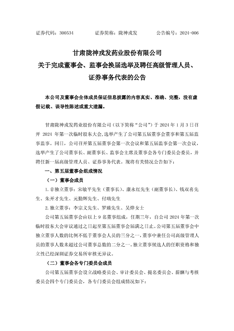 關(guān)于完成董事會(huì)、監(jiān)事會(huì)換屆選舉及聘任高級(jí)管理人員、證券事務(wù)代表的公告