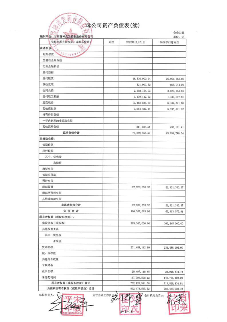 甘肅隴神戎發(fā)藥業(yè)股份有限公司最近一年的財(cái)務(wù)報(bào)告及其審計(jì)報(bào)告以及最近一期的財(cái)務(wù)報(bào)告