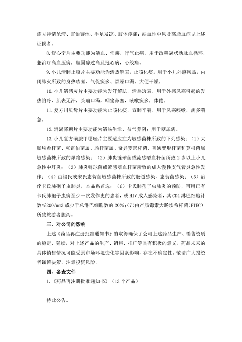 關(guān)于公司獲得藥品再注冊批準(zhǔn)通知書的公告
