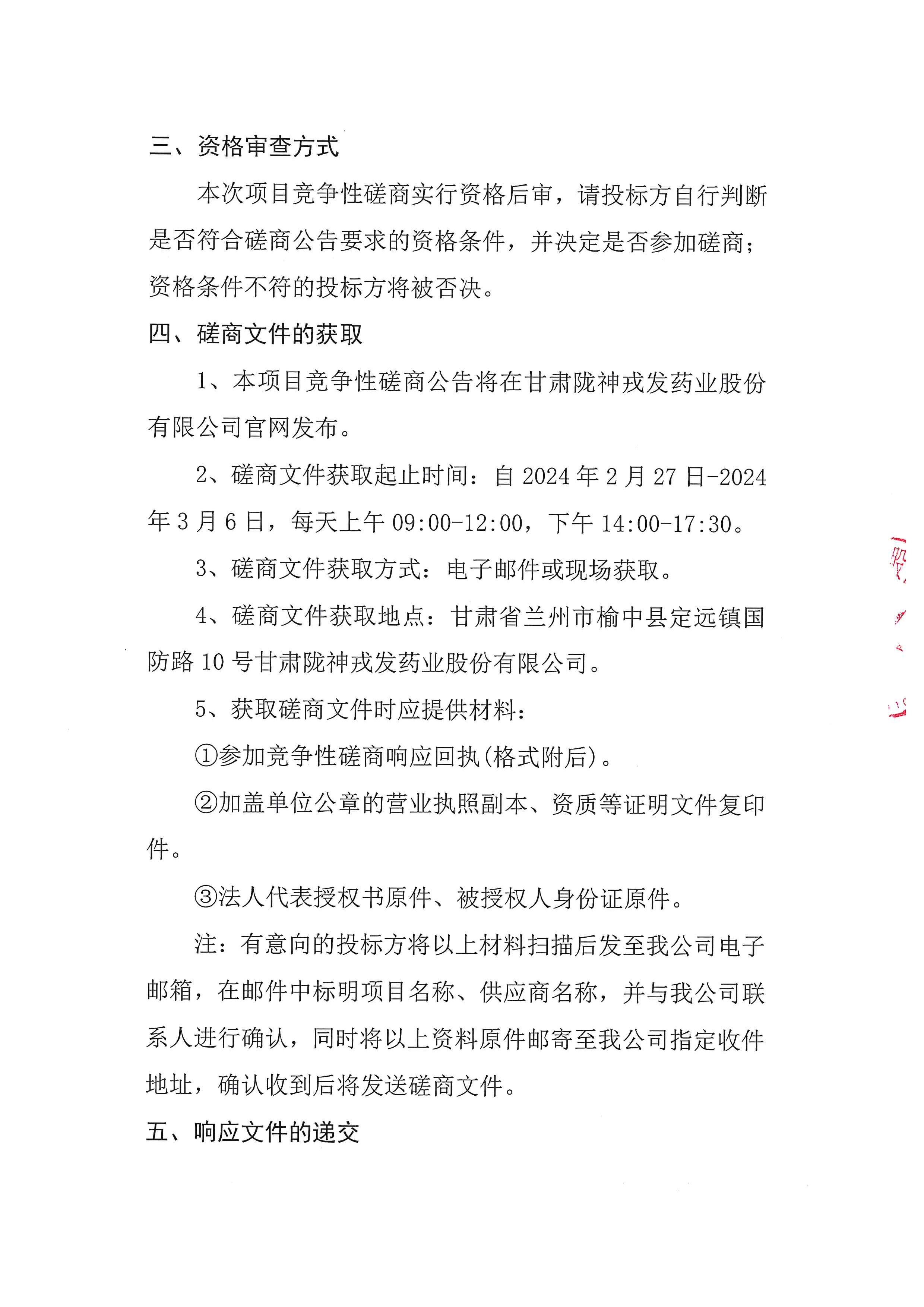 甘肅隴神戎發(fā)藥業(yè)股份有限公司年產200億,F(xiàn)代中藥生產線擴能改造項目(二期)原料及成品庫房建設項目——消防及安全設施升級改造工程(二標段)競爭性磋商公告