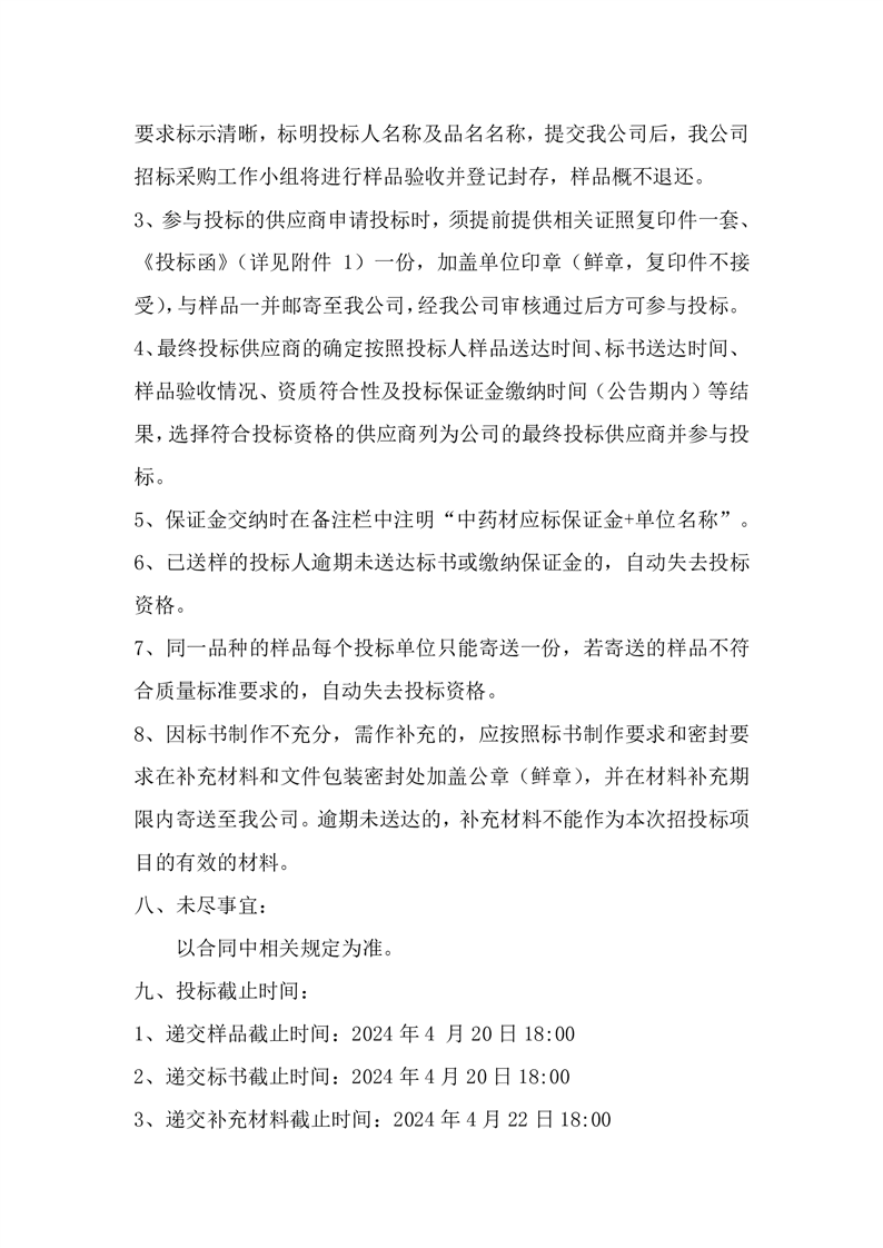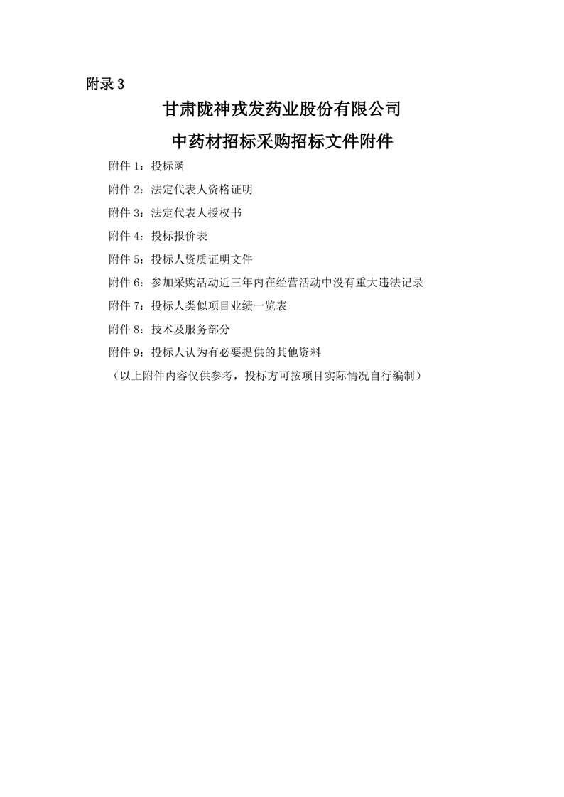 甘肅隴神戎發(fā)藥業(yè)股份有限公司 2024年4月中藥材招標(biāo)采購公告
