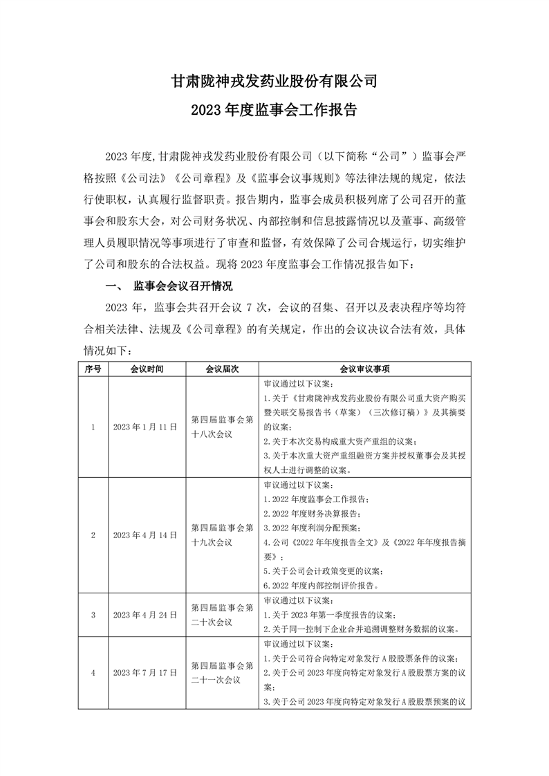 2023年度監(jiān)事會工作報告