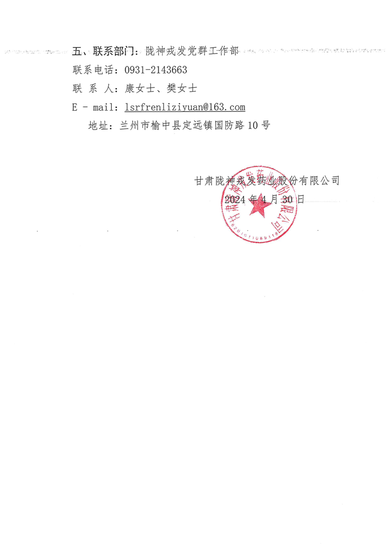 甘肅隴神戎發(fā)藥業(yè)股份有限公司招聘啟事