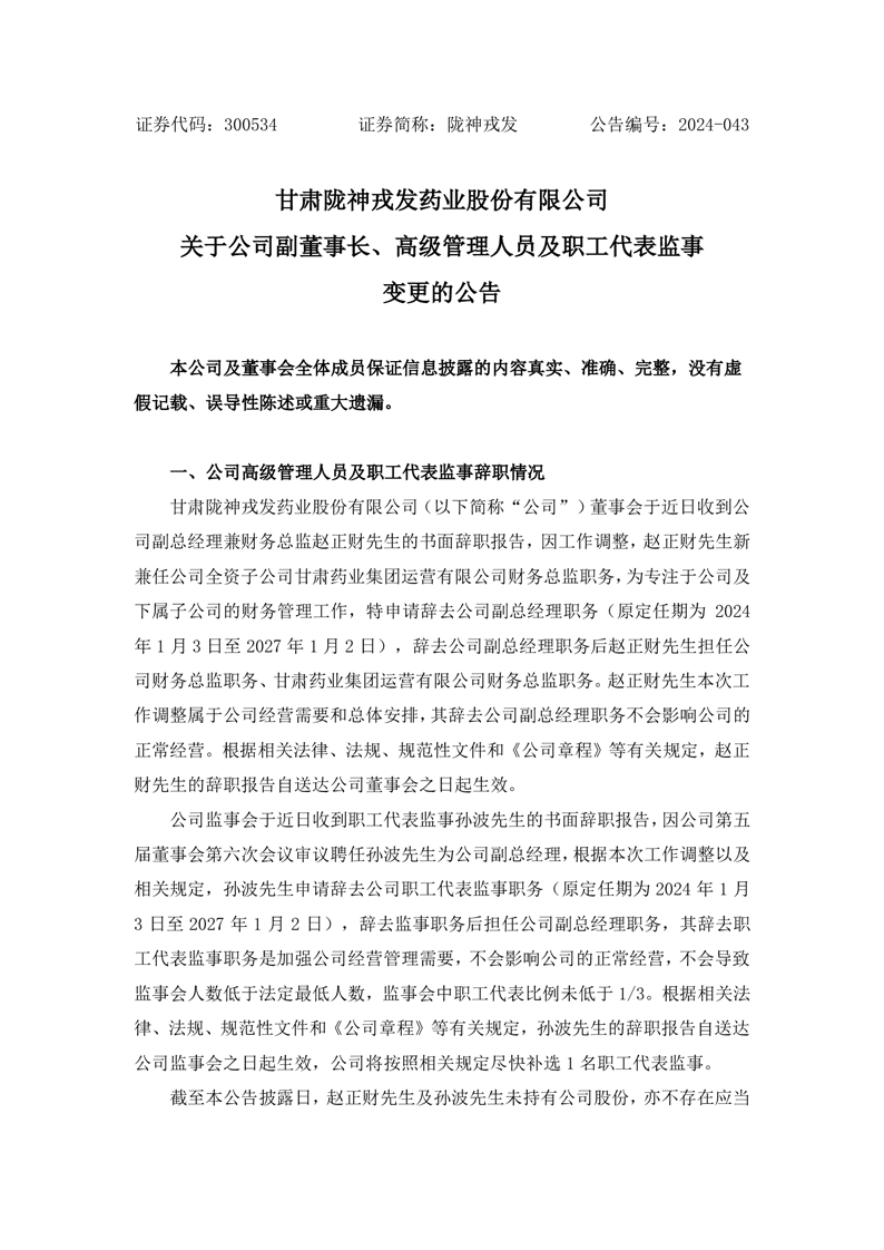 關于公司副董事長、高級管理人員及職工代表監(jiān)事變更的公告