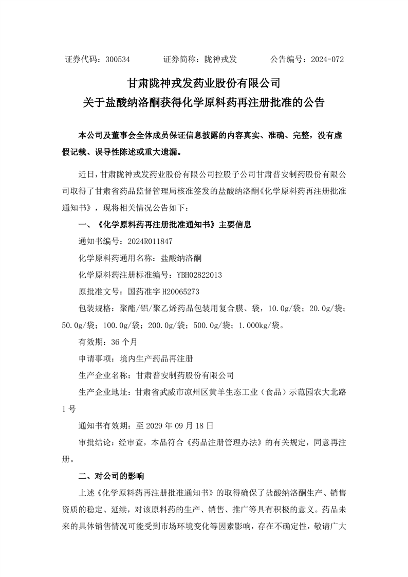 關(guān)于鹽酸納洛酮獲得化學(xué)原料藥再注冊(cè)批準(zhǔn)的公告