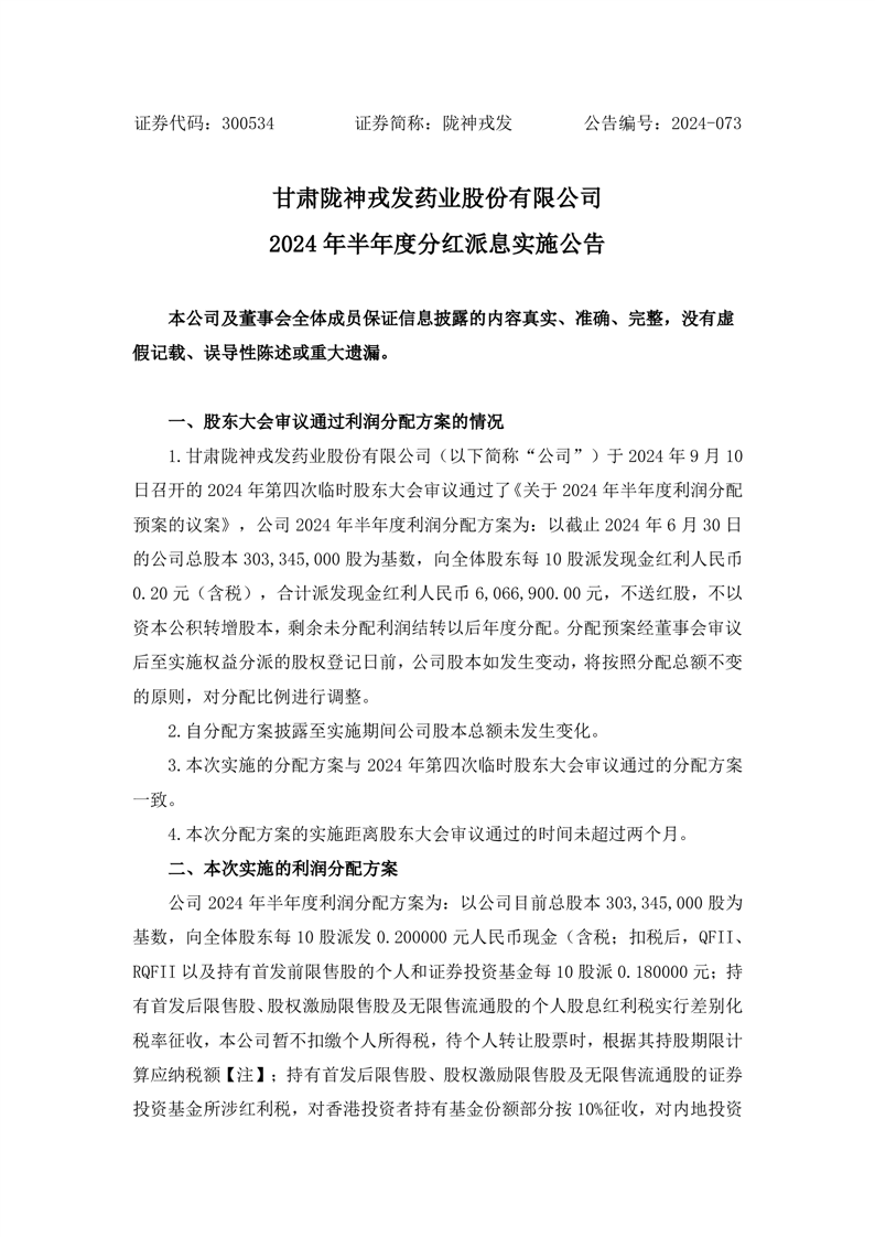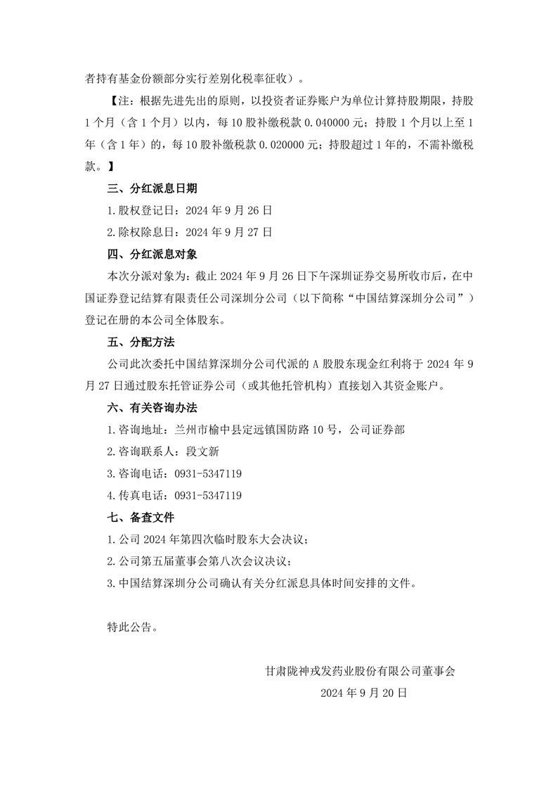 2024年半年度分紅派息實施公告