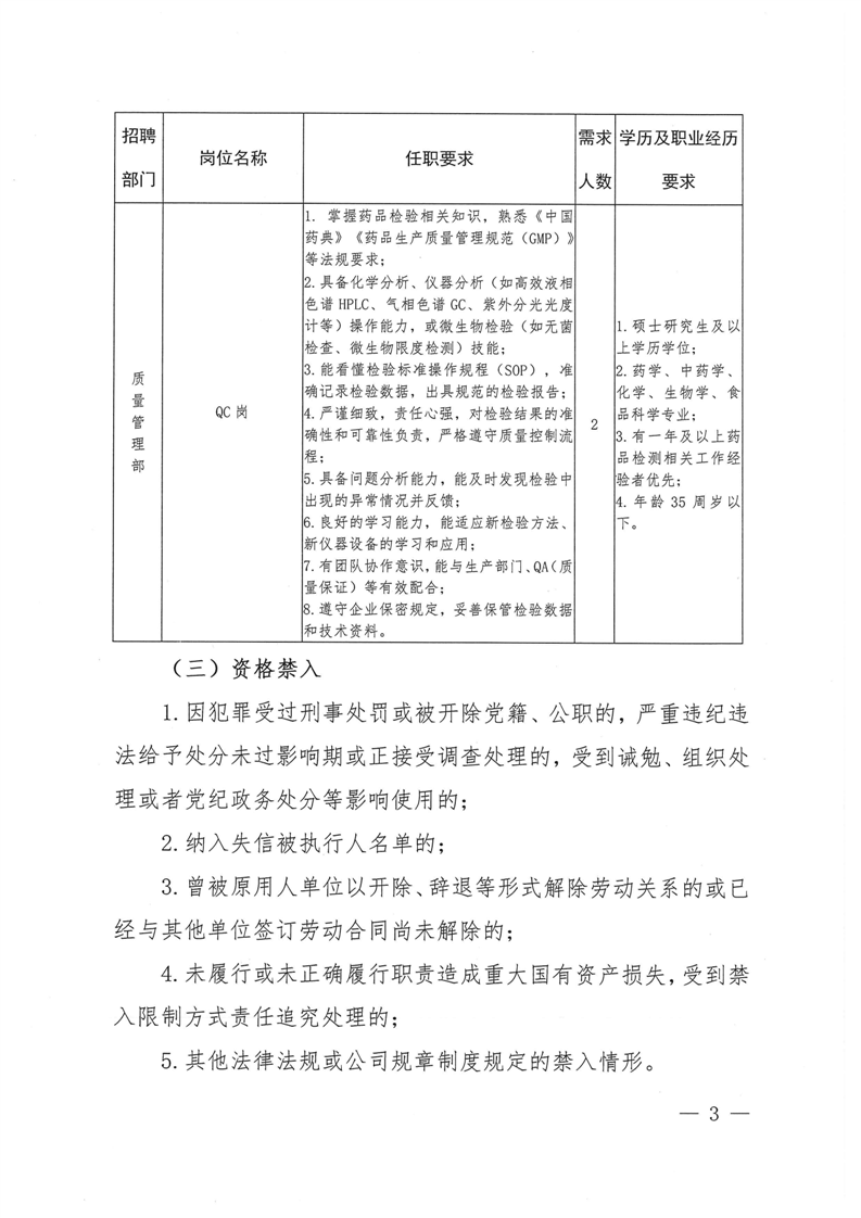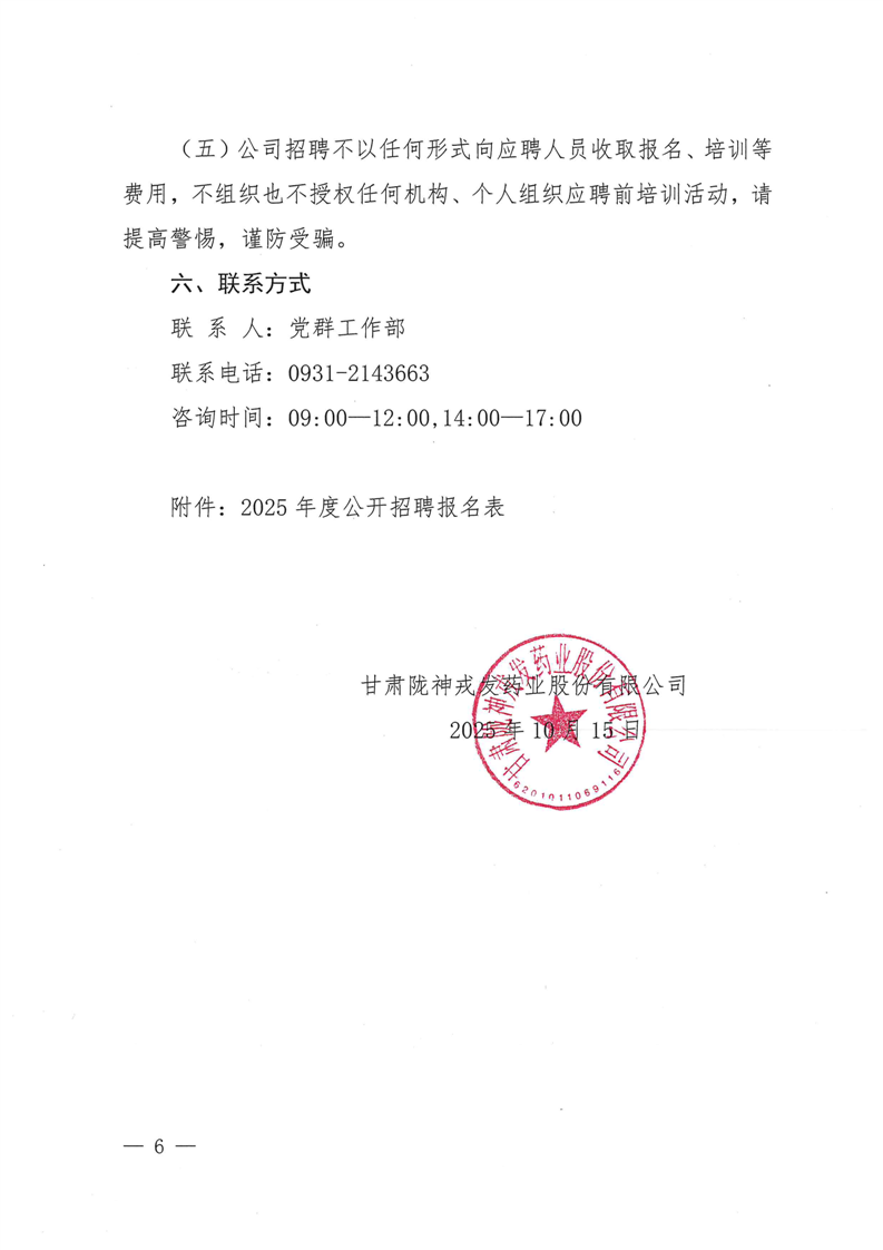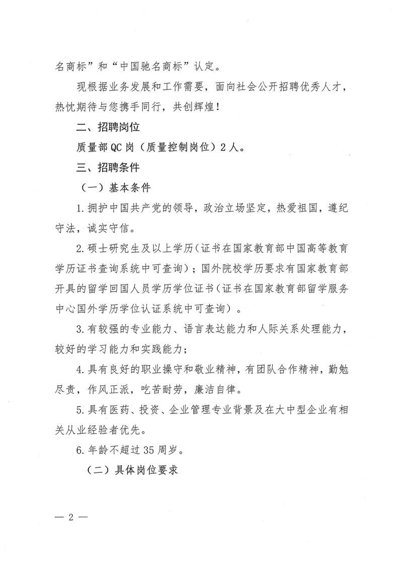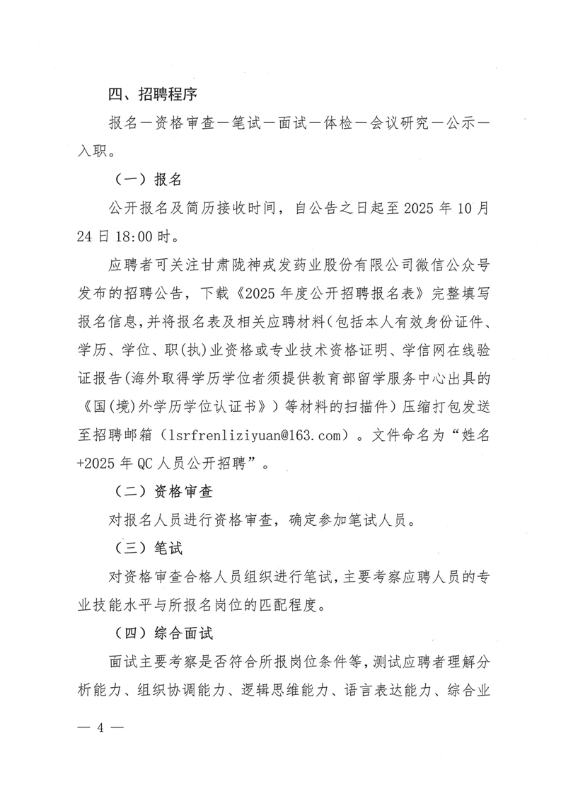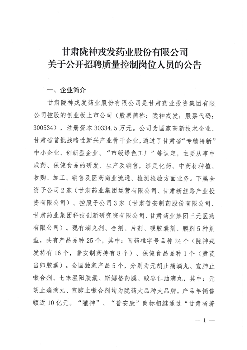 甘肅隴神戎發(fā)藥業(yè)股份有限公司關于公開招聘質(zhì)量控制崗位人員的公告