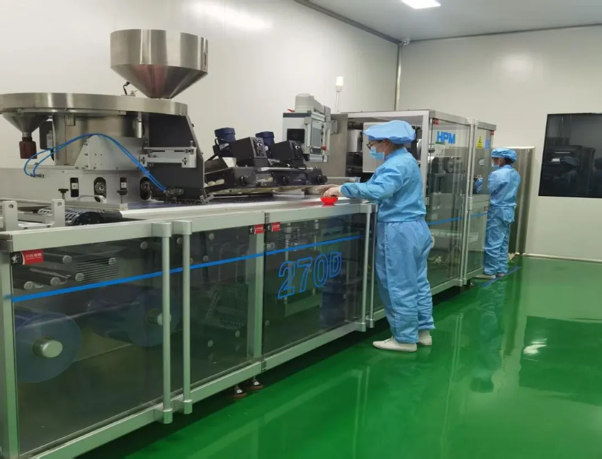 在片劑膠囊劑車間,隨著公司產(chǎn)品七味溫陽(yáng)膠囊銷售訂單接踵而至,交付時(shí)間緊、任務(wù)重,車間內(nèi)生產(chǎn)機(jī)器飛速運(yùn)轉(zhuǎn),一粒粒藥品源源不斷地從生產(chǎn)線生產(chǎn)出來(lái)。員工們精神飽滿忙生產(chǎn),全力以赴滿足七味溫陽(yáng)膠囊訂單需求,始終保持飽滿的工作熱情和高昂的斗志奮戰(zhàn)在生產(chǎn)一線。