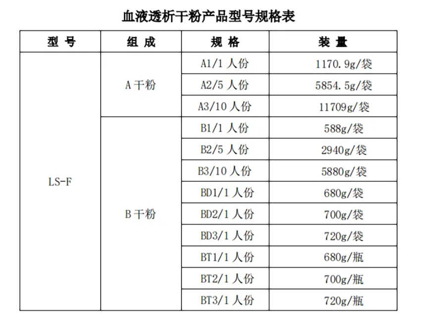 此次公司獲批的血液透析干粉產(chǎn)品市場成熟,已被臨床大量應(yīng)用,適用于急性腎衰竭、慢性腎衰竭的血液透析治療,注冊的產(chǎn)品離子濃度型號為“鉀2.0、鈣1.5”型,使用規(guī)格廣泛覆蓋1人份、5人份、10人份裝量及聯(lián)機(jī)B干粉袋、聯(lián)機(jī)B干粉筒等,完全適用于各種品牌血液透析機(jī)的聯(lián)機(jī)包裝,可滿足絕大多數(shù)患者與透析中心的使用需求。
