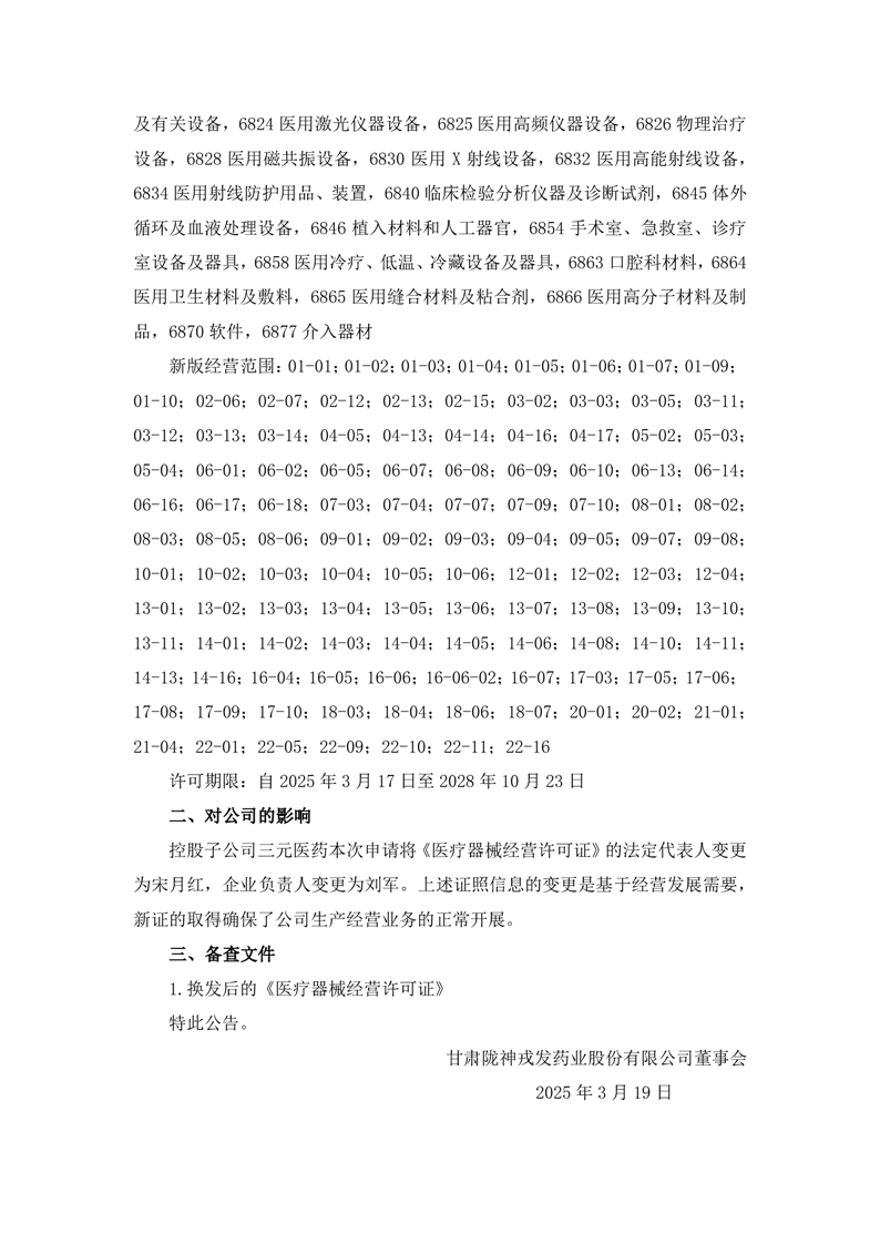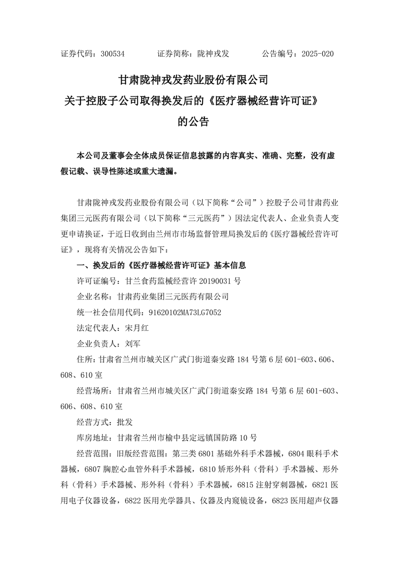 關于控股子公司取得換發(fā)后的《醫(yī)療器械經(jīng)營許可證》的公告