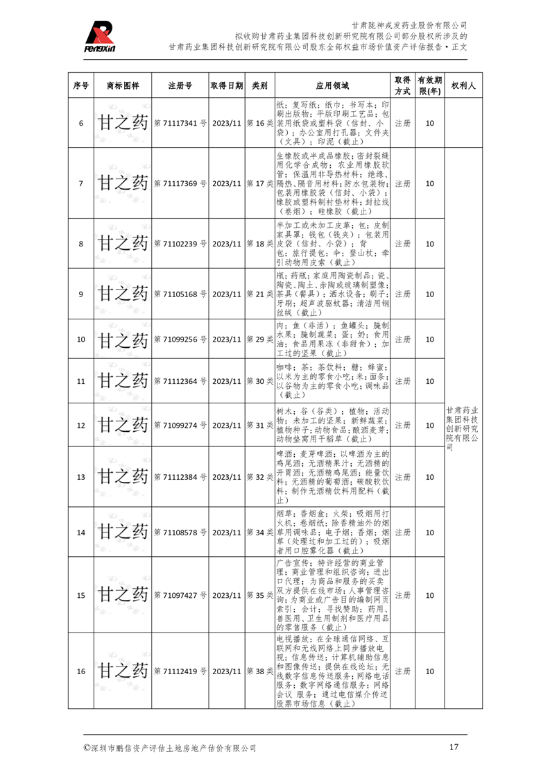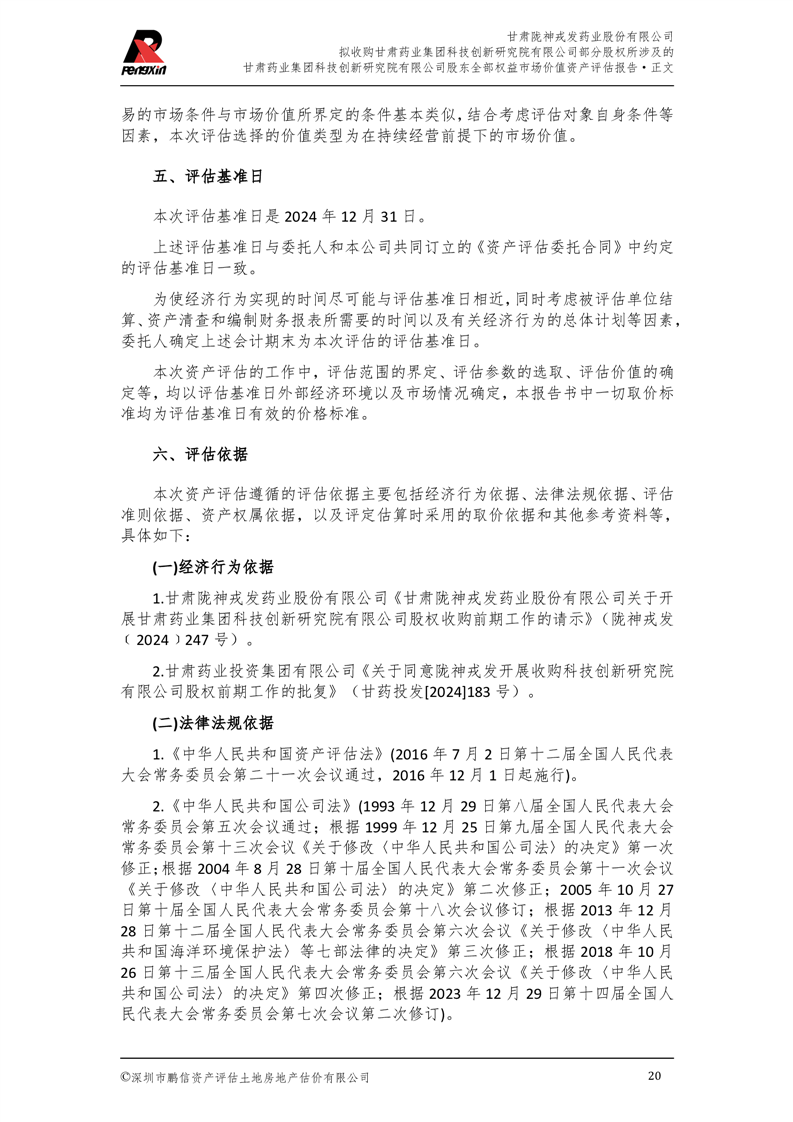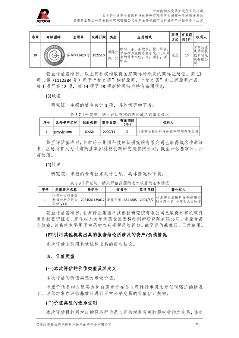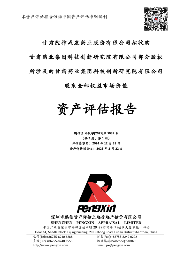 甘肅藥業(yè)集團科技創(chuàng)新研究院有限公司股東全部權(quán)益市場價值資產(chǎn)評估報告(鵬信資評報字[2025]第S039號)