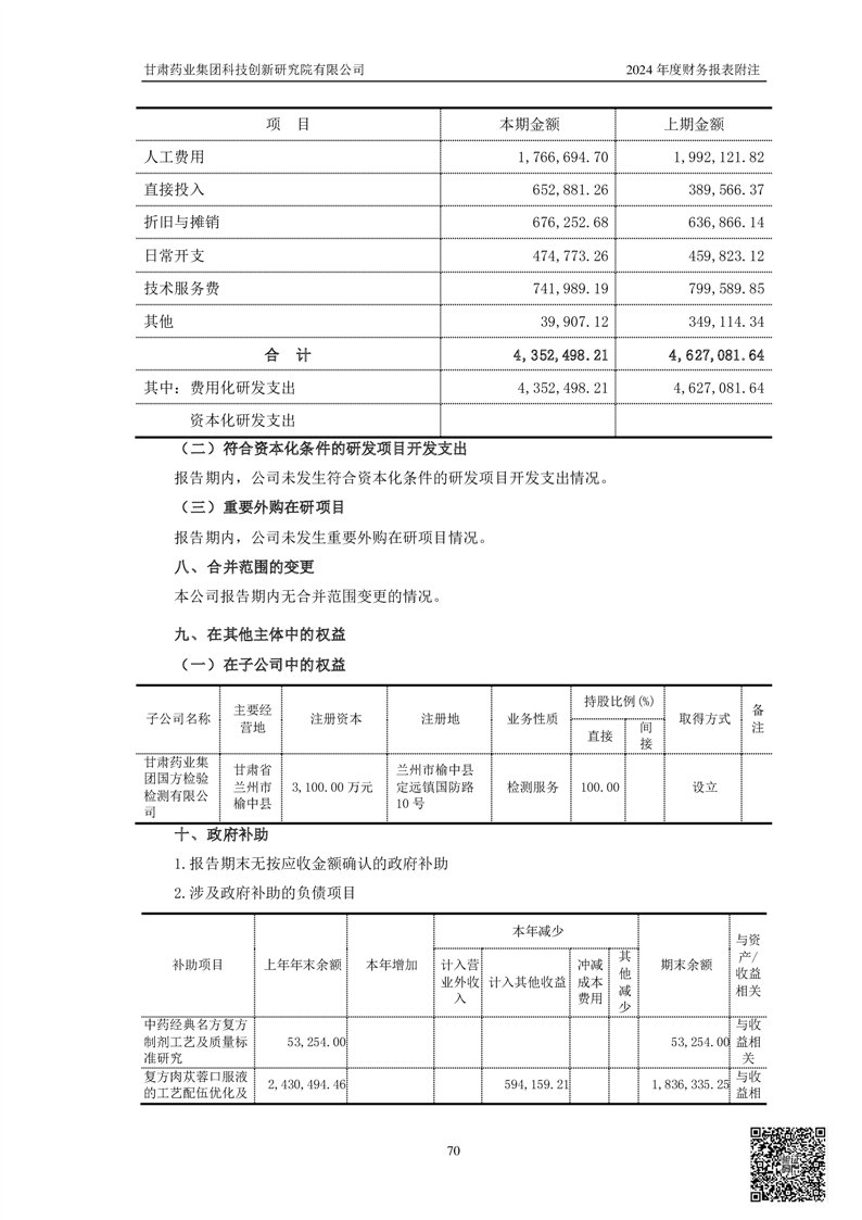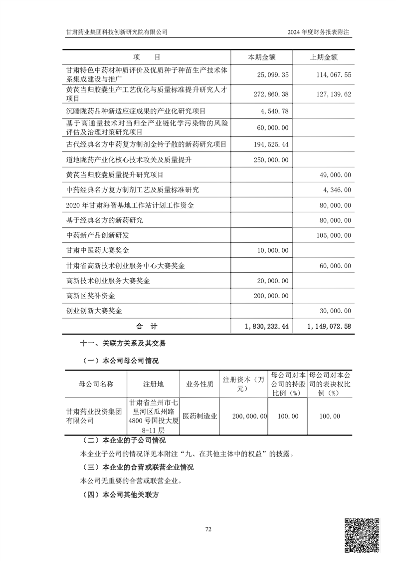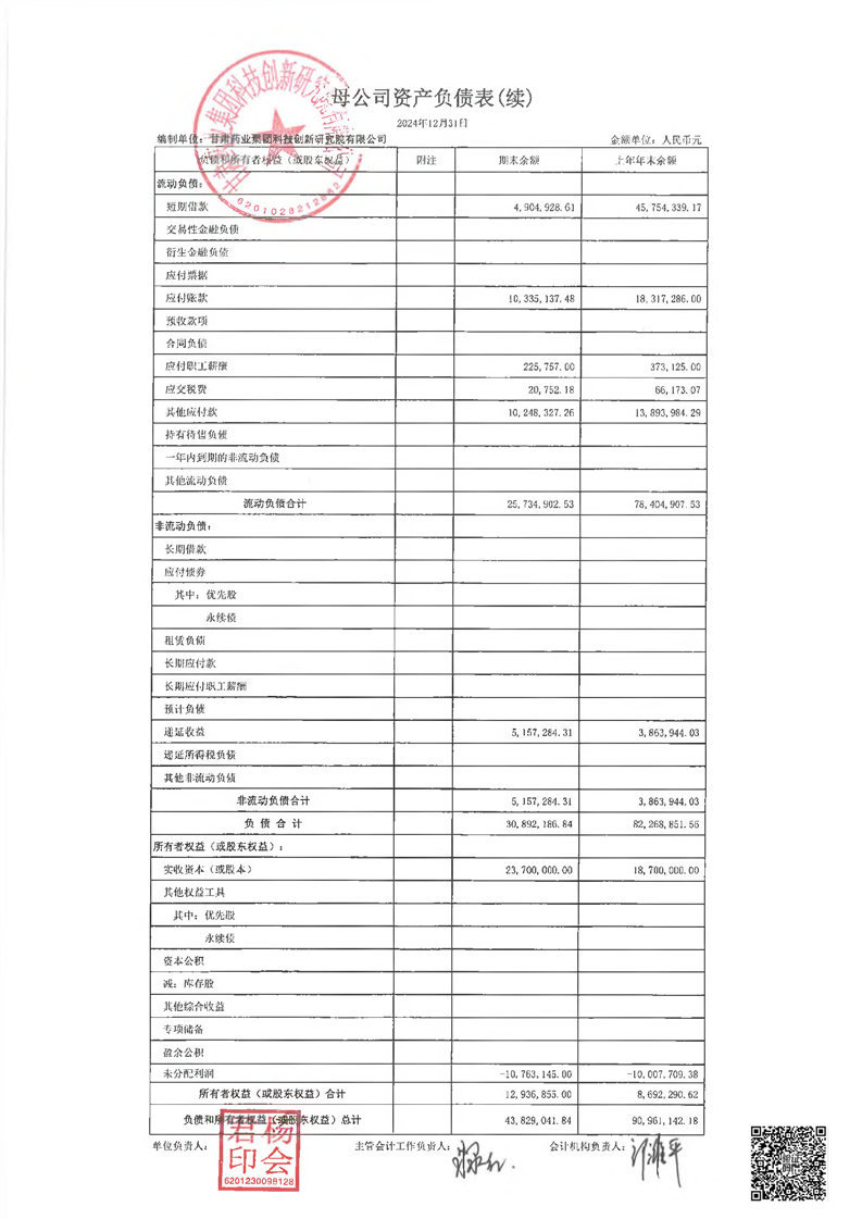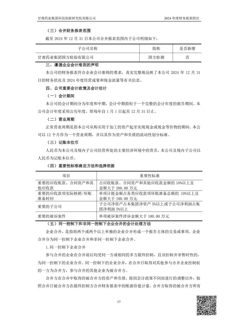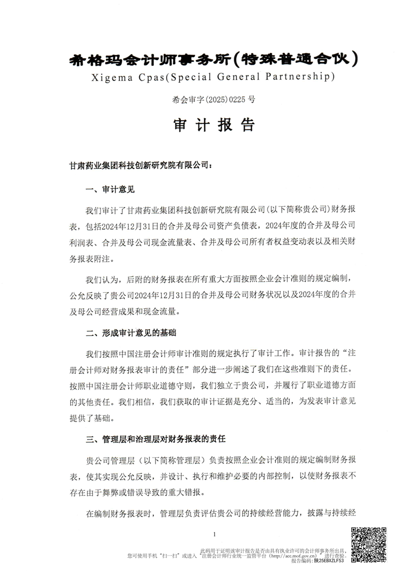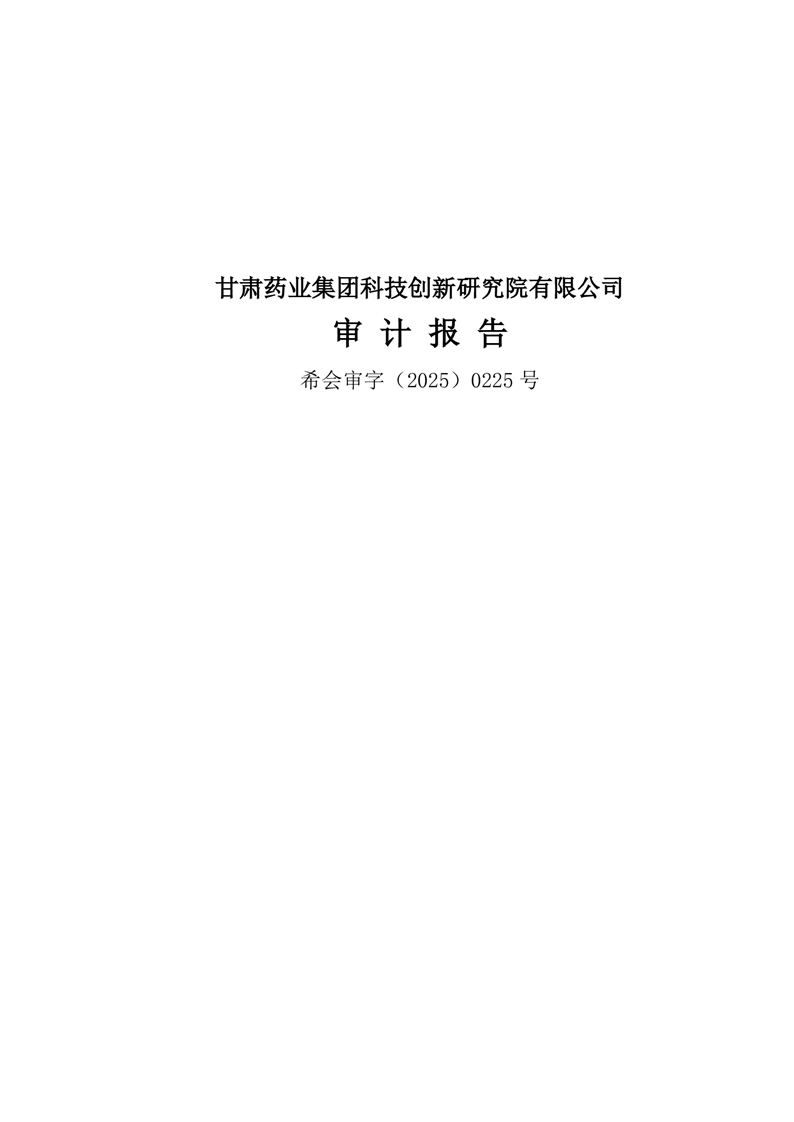 甘肅藥業(yè)集團科技創(chuàng)新研究院有限公司審計報告(希會審字(2025)0225號)
