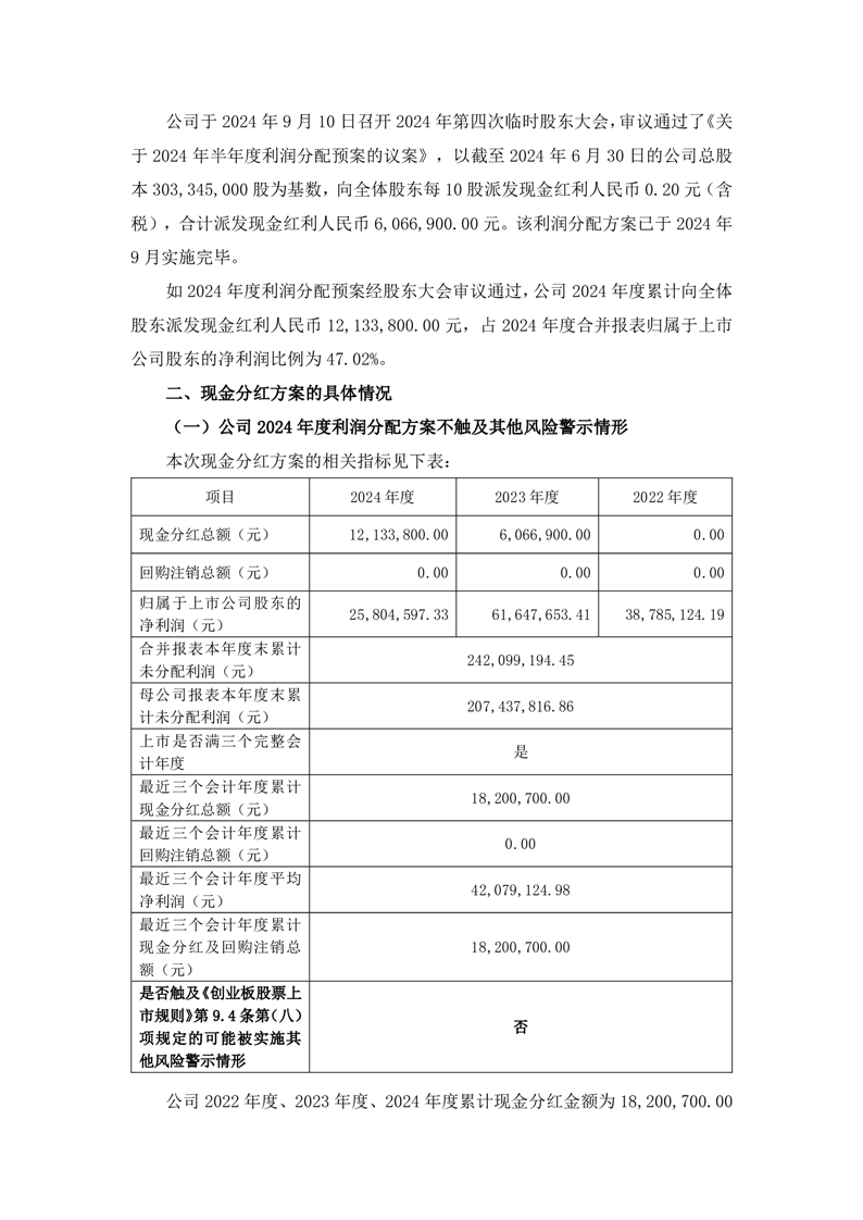 關(guān)于2024年度利潤(rùn)分配預(yù)案的公告