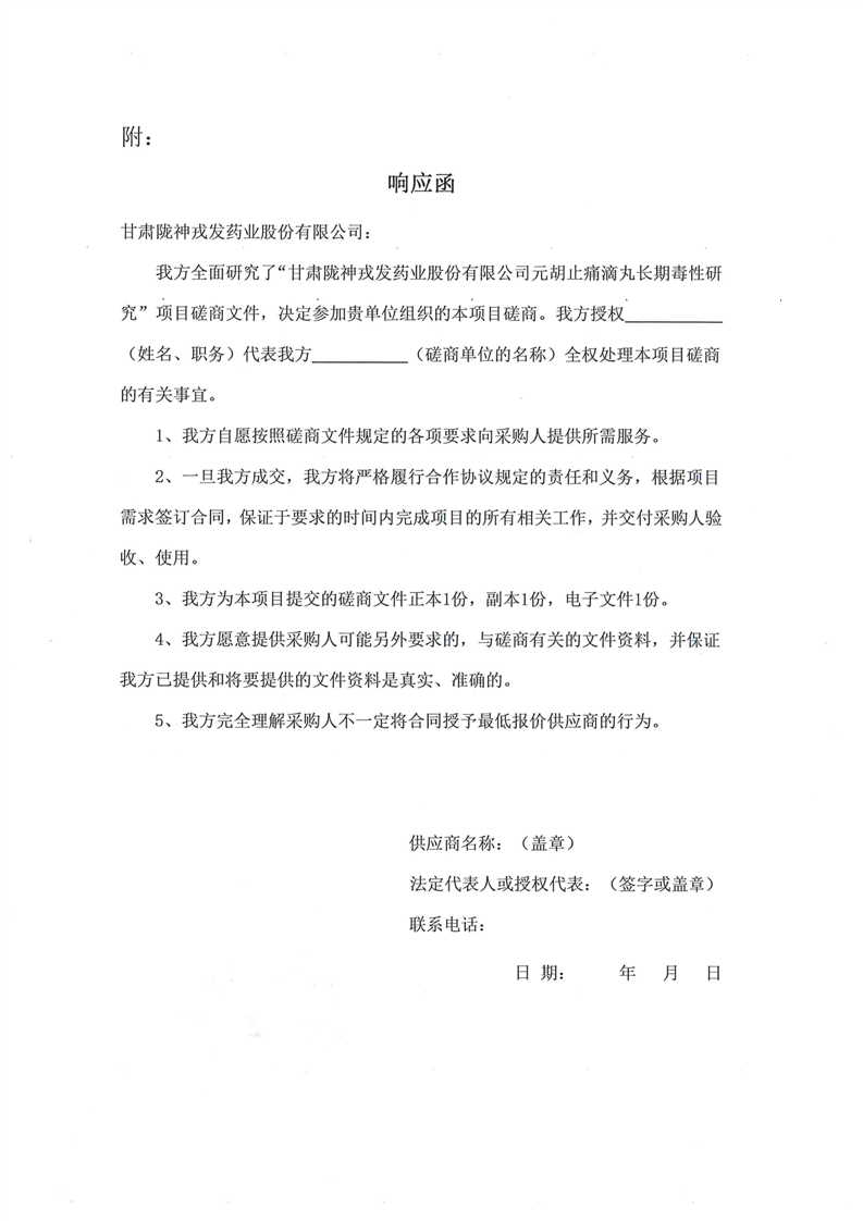 甘肅隴神戎發(fā)藥業(yè)股份有限公司元胡止痛滴丸長(zhǎng)期毒性研究項(xiàng)目競(jìng)爭(zhēng)性磋商公告