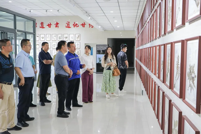 調(diào)研組一行首先在制劑車間大廳參觀了公司精心制作的中藥材標(biāo)本展示墻,直觀體驗(yàn)近40年厚重的中醫(yī)藥文明“活化石”,對甘肅省豐富的中藥材資源表現(xiàn)出了濃厚的興趣。