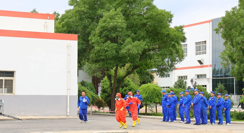 15時40分,火勢因泄漏量增大突然升級——10號罐底部出液閥燃起火焰,熱輻射導致相鄰罐溫度快速攀升。“啟動一級應急響應!”現(xiàn)場總指揮下達指令:“疏散組立即引導罐區(qū)周邊50米內(nèi)人員撤離至安全區(qū)域;滅火組利用泡沫式滅火器壓制外圍火勢;通訊組聯(lián)系涼州區(qū)消防中隊請求支援!”