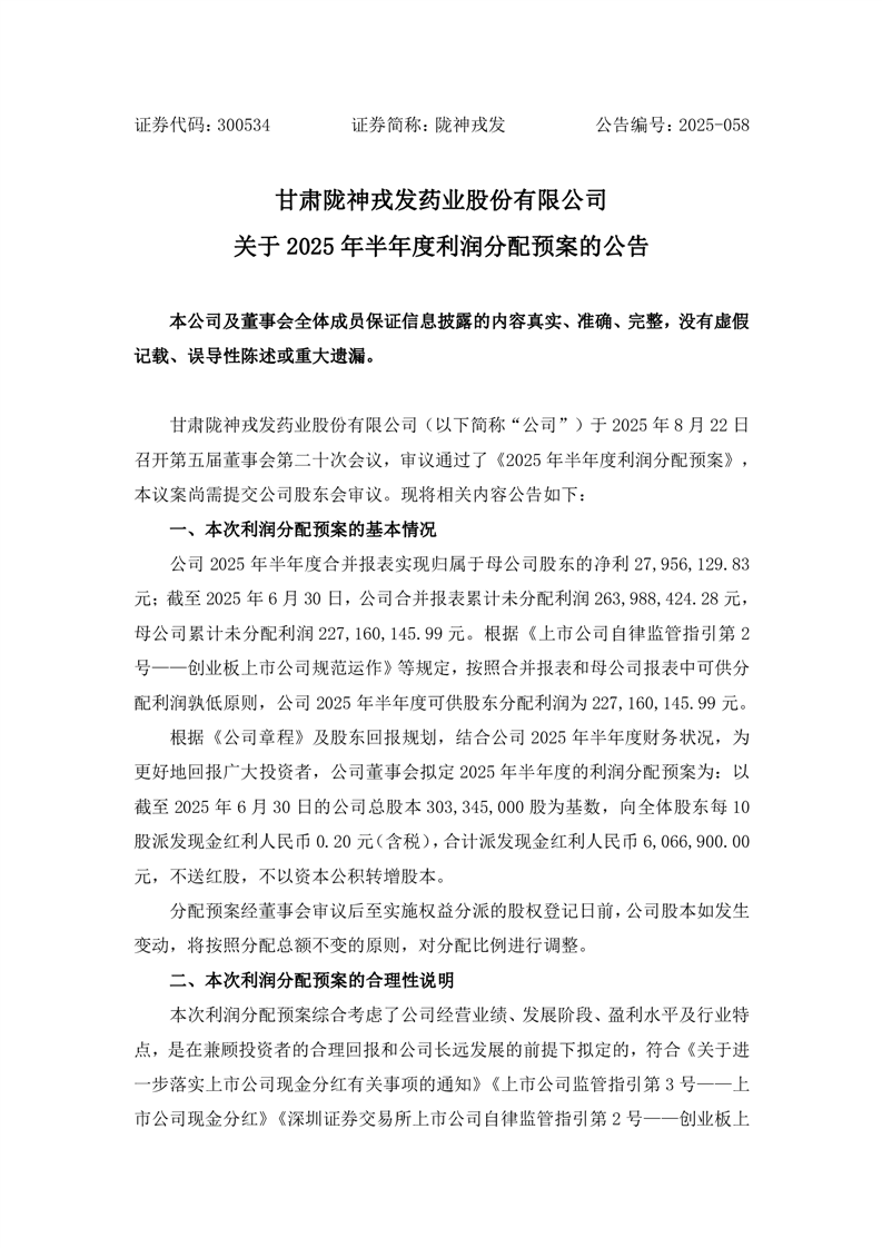 關(guān)于2025年半年度利潤(rùn)分配預(yù)案的公告