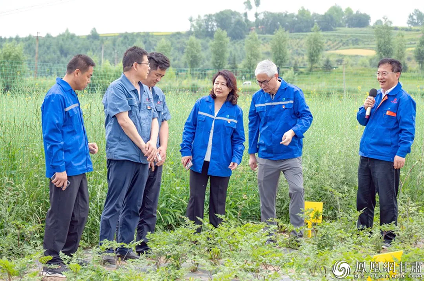 甘肅藥業(yè)集團(tuán)和蘭州佛慈集團(tuán)的黨員干部考察田家河鄉(xiāng)的藥田,了解抑制當(dāng)歸苗抽苔“木質(zhì)化”的新技術(shù)。