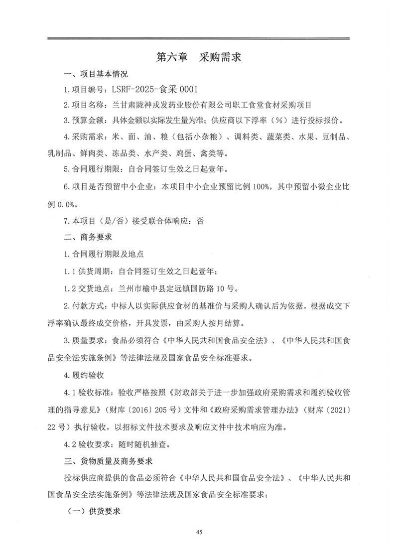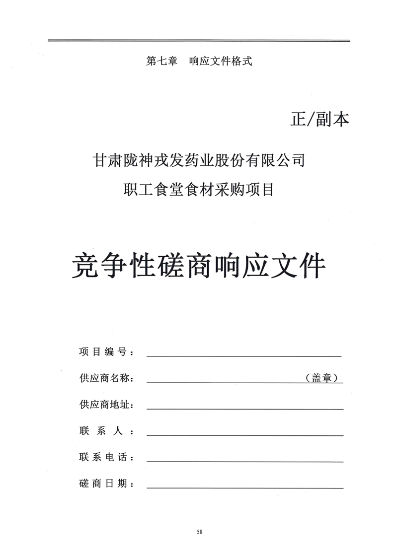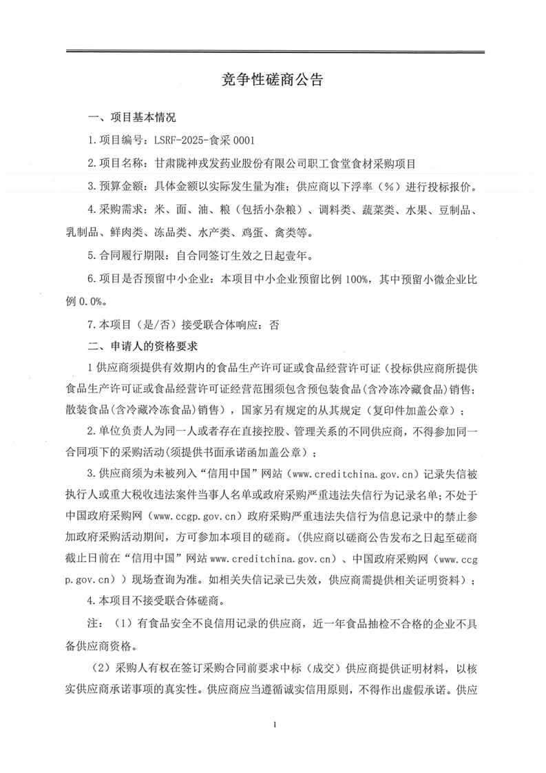 甘肅隴神戎發(fā)藥業(yè)股份有限公司職工食堂食材采購(gòu)項(xiàng)目競(jìng)爭(zhēng)性磋商文件